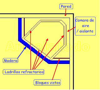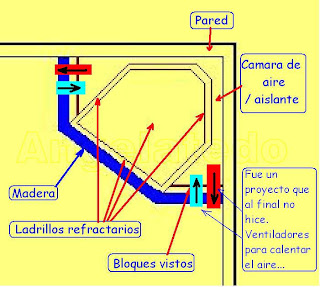Pasado el tiempo me pude construir una, y pasó mucho hasta poder hacerlo pero al final ha valido la pena. Ayer estuvo encendida y el color naranja con sombras se reflejaba en las paredes, esas sombras si alguien las ha visto tienen movimiento aunque estén quietas, y es debido a los movimientos que produce la llama por el cambio de combustión del oxigeno, que es el que hace que un buen fajo de ramas haga una buena llamarada prendiendo poco a poco en los troncos más recios y gruesos…. Estaría contando anécdotas de antaño… pero vamos a describir cómo fue su construcción.